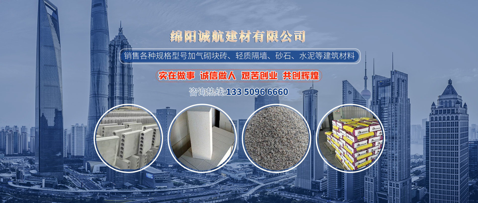 綿陽(yáng)誠(chéng)航建材有限公司是一家集銷(xiāo)售與施工砌筑為一體的輕質(zhì)建筑材料公司。專(zhuān)業(yè)為綿陽(yáng)周邊城市提供批發(fā)零售各種規(guī)格型號(hào)加氣砌塊磚、輕質(zhì)隔墻、砂石、水泥等建筑材料。承接各大酒店、商場(chǎng)、茶樓、KTV隔墻的施工砌筑...